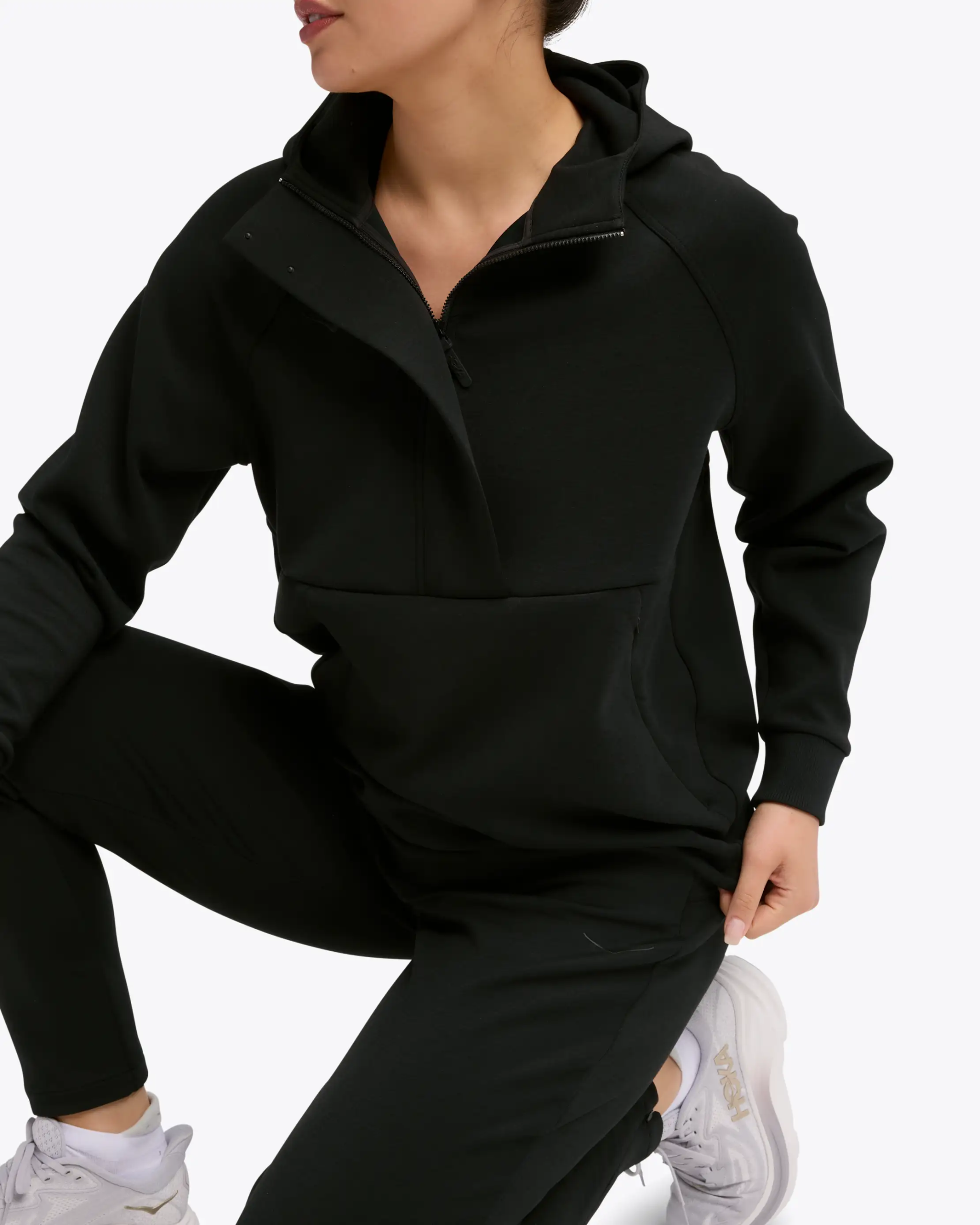 Recovery is a state of mind. When you need to be enveloped in comfort and eased into motion, the Essential Recovery ½-Zip Hoodie has you covered. From the oh-so-smooth lyocell blend to the cushy double-layer hood, all the details add up to make it body-hugging soft. And when it comes time to mobilize, the large kangaroo zip pocket is ready, with internal drop-in pockets for your keys, cards and snacks.